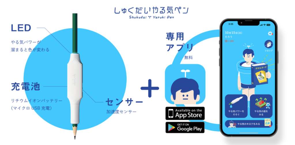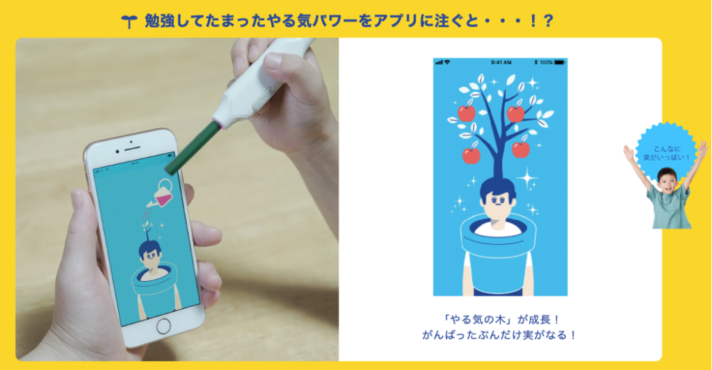IoT文具である鉛筆を使って勉強した分だけ、専用アプリに「やる気」を注入できる仕組みを思いついたのです。