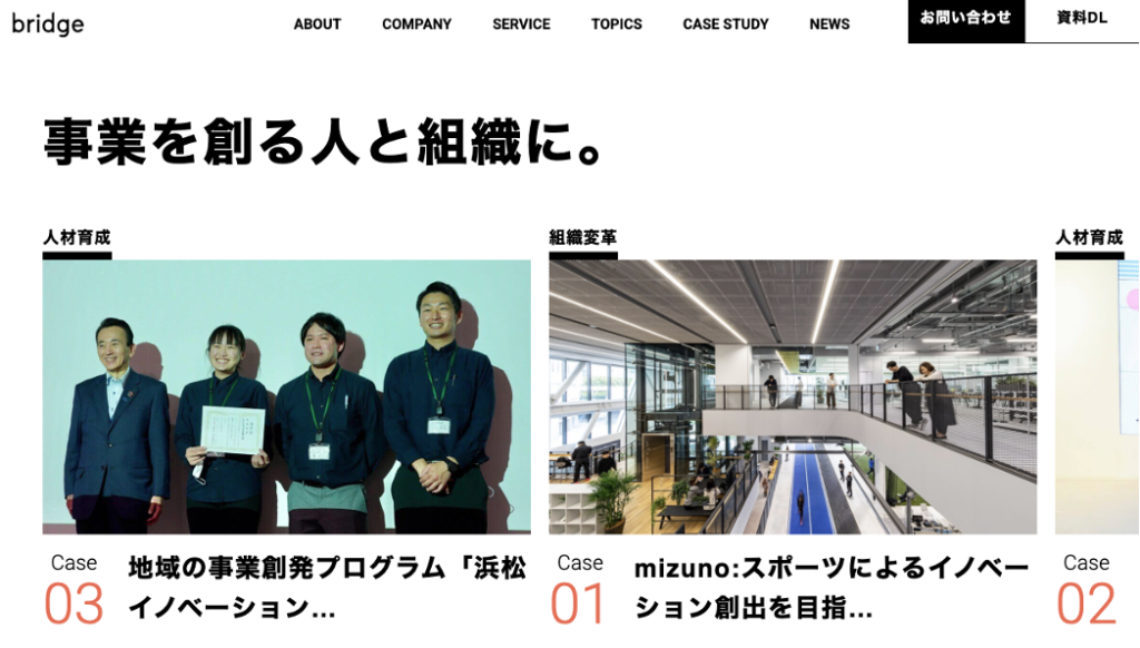 | 株式会社 bridge | 新規事業開発をきっかけに、組織全体を変革し自走力を高めたい企業 |