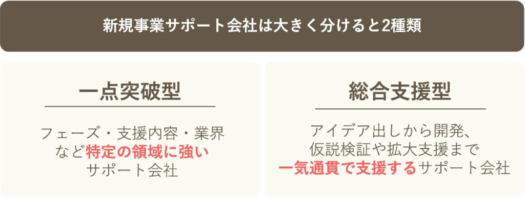 ・一点突破型:特定のフェーズや業界・分野での新規事業開発サポートに強い