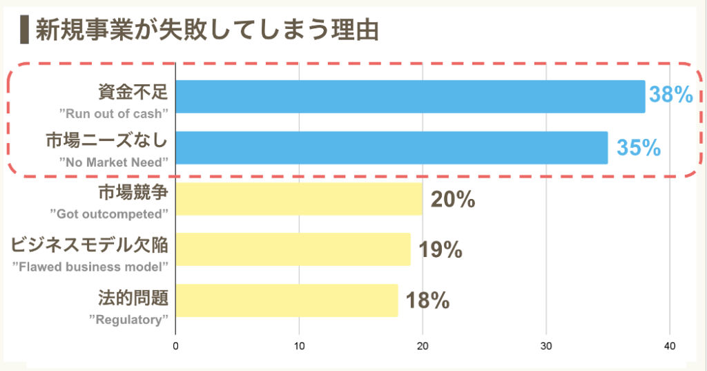 CB Insightsの調査によると、実際に新規事業で失敗した企業のうち35%が “No Market Need” を原因にあげています。