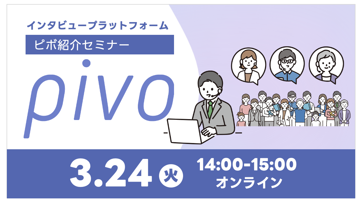- インタビュープラットフォーム pivo(ピボ)サービス内容・導入事例・ご利用料金についてご紹介 (オンライン、無料)